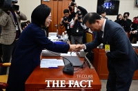 김종철 후보자와 악수하는 최민희 위원장 [포토]