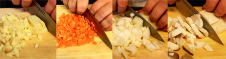 1. 감자, 당근, 양파, 버섯을 썬다.