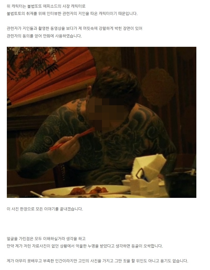 그림에 대해 "고 노무현 대통령님의 무슨 사진인지 모르겠으나, 너무 어처구니가 없고 분해서 자다 글을 씁니"라며 "이 캐릭터는 불법 토토 취재를 위해 인터뷰한 관련자를 따온 캐릭터고 관련자의 동의를 얻어 만화를 사용했다"라고 해명했다. 또한 박태준은 참고한 사진을 함께 올리며 "이 사진 한 장으로 모든 이야기를 끝내겠다"고 전했다.