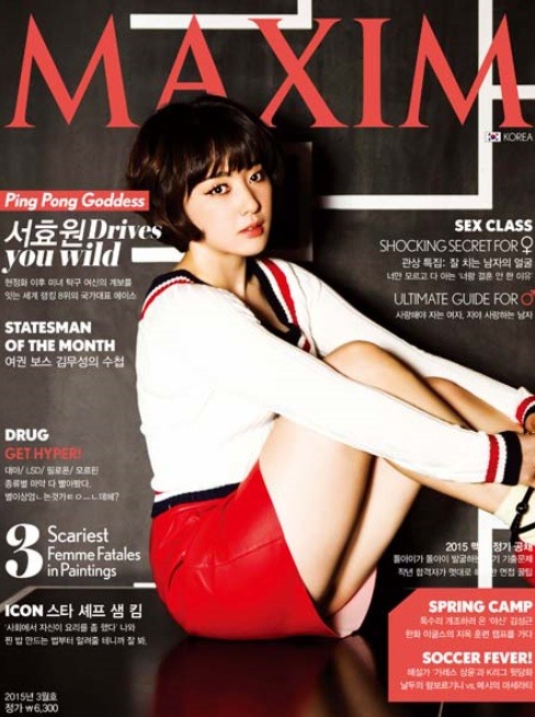 평소 선수단 중에서 얼짱 탁구선수로 인기를 끌던 서효원 선수는 지난해 3월 맥심의 표지모델로 남심을 저격했는데요. 커피 맥심의 모델인 줄 알았던 서효원 선수. 맥심이 남성잡지라는 것을 안 것은 모델 제안을 승낙한 후였다고 하네요.