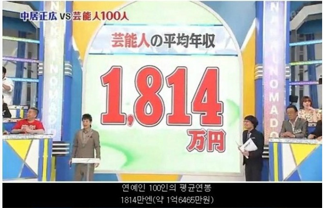 일본의 한 방송에서 일본 아이돌의 연봉을 공개했다. 우선 국민의 평균 연봉은 324만엔 (약 2940만원) 이라고 밝히며, 일본 연예인 100명의 평균 연봉은 1814만엔 (약 1억 6465만원)이라고 소개했다.