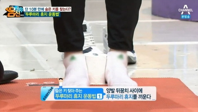 최근 온라인 커뮤니티에서 화제가 되고 있는 이 방법은 '채널A 나는 몸신이다' 에서 소개된 '두루마리 휴지 운동법'이다.