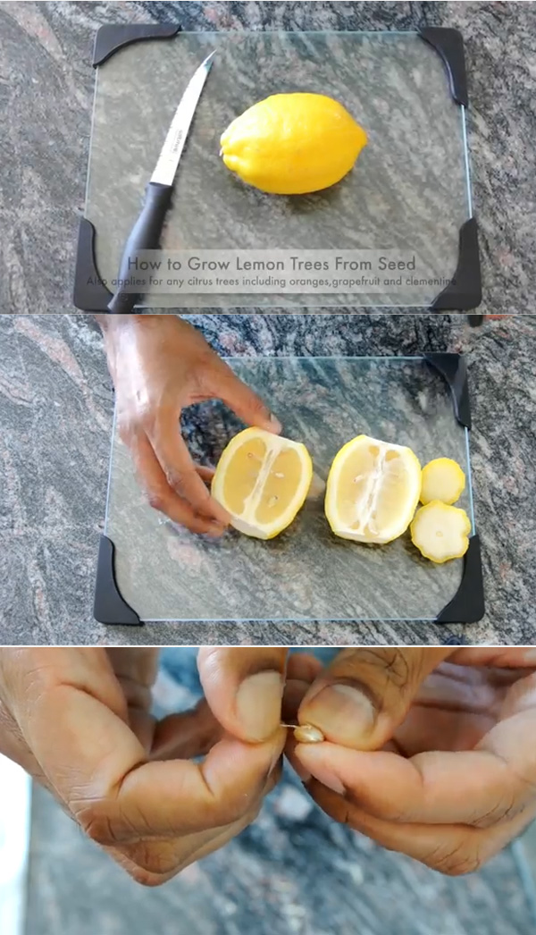 피부에 좋은 레몬을 집에서 직접 키우며 쉽게 따먹을 수 있다는 것이다. 해당 영상에 따르면 우선 레몬 나무를 키우기는 위해서는 레몬 씨가 필요하다. 첫번째로 새로운 레몬을 잘라 씨를 빼내야 한다. 이때, 레몬을 가로로 자르는 것 보다 세로로 자르면 더 많은 씨를 얻을 수 있게 된다.