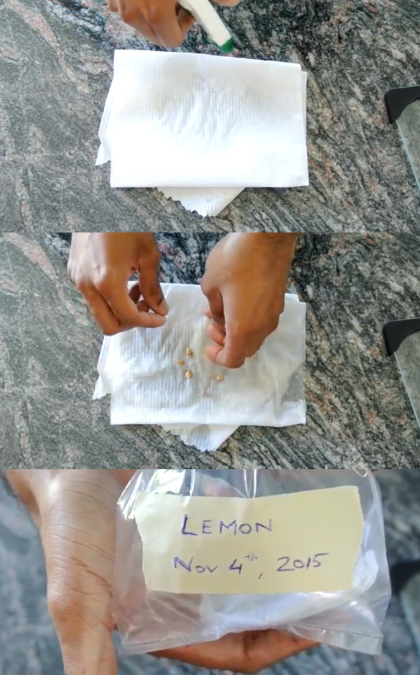 두번째로는 발래낸 레몬 씨를 깨끗하게 키친타올로 닦아 미끈한 부분을 없애야 한다. 이후 레몬씨를 한꺼풀 벗겨내면 된다. 세번째로 키친타올에 촉촉하게 물을 뿌리고 비닐봉지에 넣어 밀봉을 하면된다. 이후 씨앗이 발아 할 수 있도록 실온에 약 열흘간 보관한다.