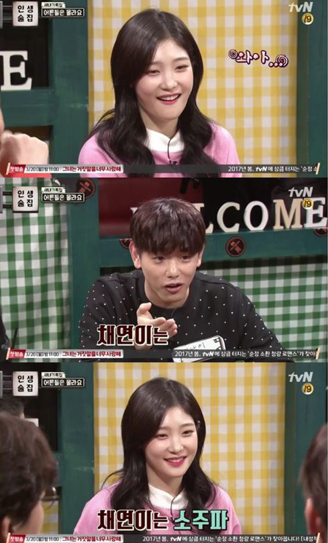공개된 게시물에는 과거 방송된 tvN '인생술집'의 장면 일부가 담겨있다. 당시 방송에 출연한 다이아 멤버 정채연은 통통 튀는 입담을 과시했다.