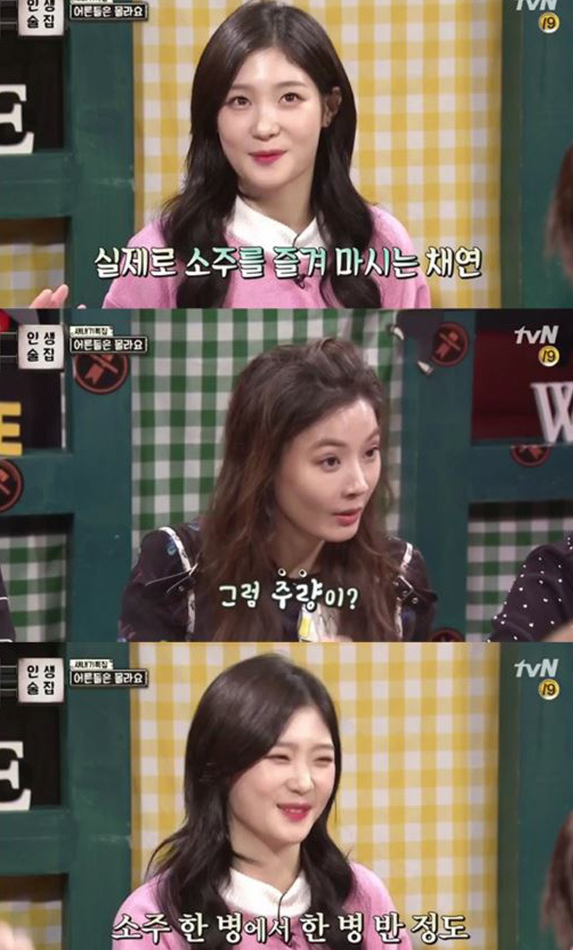 평소 소주를 즐겨 마시고 혼술을 한다는 정채연의 놀라운 반전 매력이 시청자들의 눈길을 끌었다. 소주를 한 병 이상 마신다는 정채연의 주량은 방송용일까?