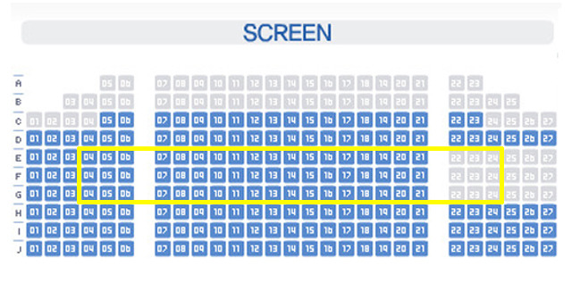 한국영화에는 자막이 없기 때문에 중앙자리가 명당자리다. 스크린도 고르게 잘 보이고 음향도 일정하게 들린다. 만약 영화를 꽉 차게 보고 싶다면 중앙에서 약간 앞쪽자리가 좋다. 편안한 눈높이를 원한다면 중앙에서 약간 뒤쪽으로 앉는 것을 추천한다.