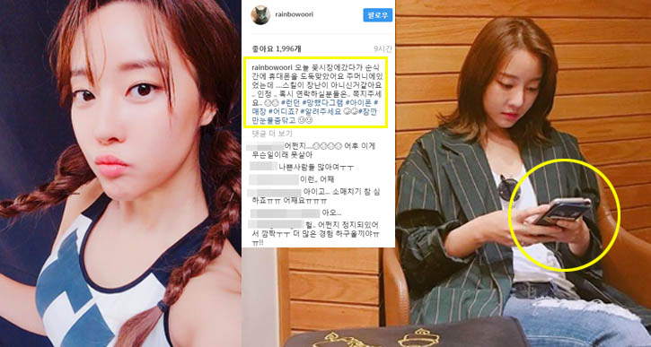 그룹 레인보우 출신 고우리가 해외에서 휴대폰을 도둑맞았다.