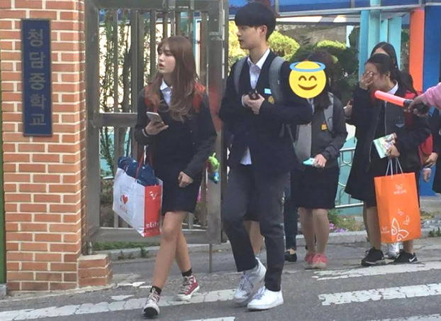 최근 온라인 커뮤니티에서는 소미와 이대휘가 학교 앞에서 교복을 입고 있는 사진이 게재됐다.