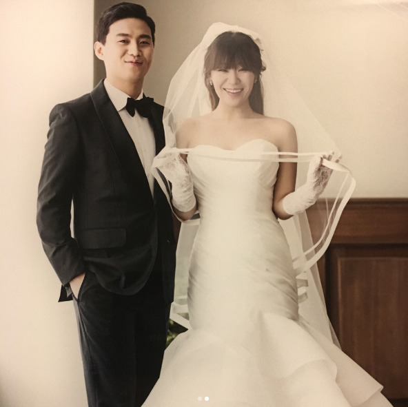 1일 정주리는 본인의 인스타그램에 "우리의 2주년 결혼기념일을 축하해. 잘 살아보자 10년 친구. 그만 싸우자. 여보가 무조건 져라. 술이 없는 기념일은 의미 없지만 꽃다발 고맙다"는 글과 함께 두장의 웨딩 화보 사진을 게재했다.