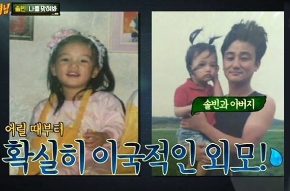 한편, 솔빈은 어린 시절 SBS '진실게임-진짜 혼혈인을 찾아라'편에 인디언 소녀로 출연하며 많은 패널에게 혼혈인으로 지목되기도 했다.