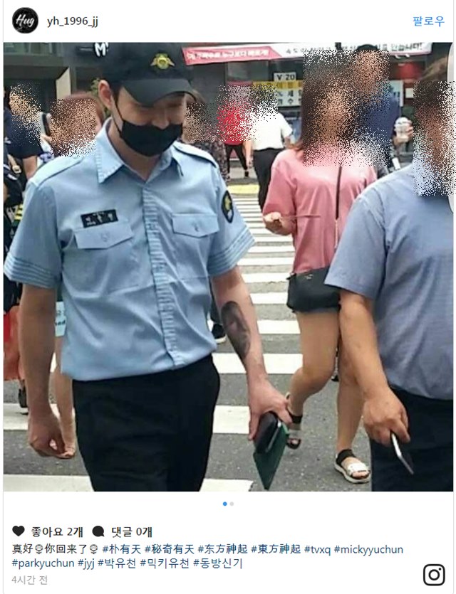 [더팩트ㅣ박대웅 기자] 그룹 JYJ 박유천이 25일 국방의 의무를 마치고 전역한다. 이와 함께 박유천 팔에 새겨진 문신이 주목 받고 있다.