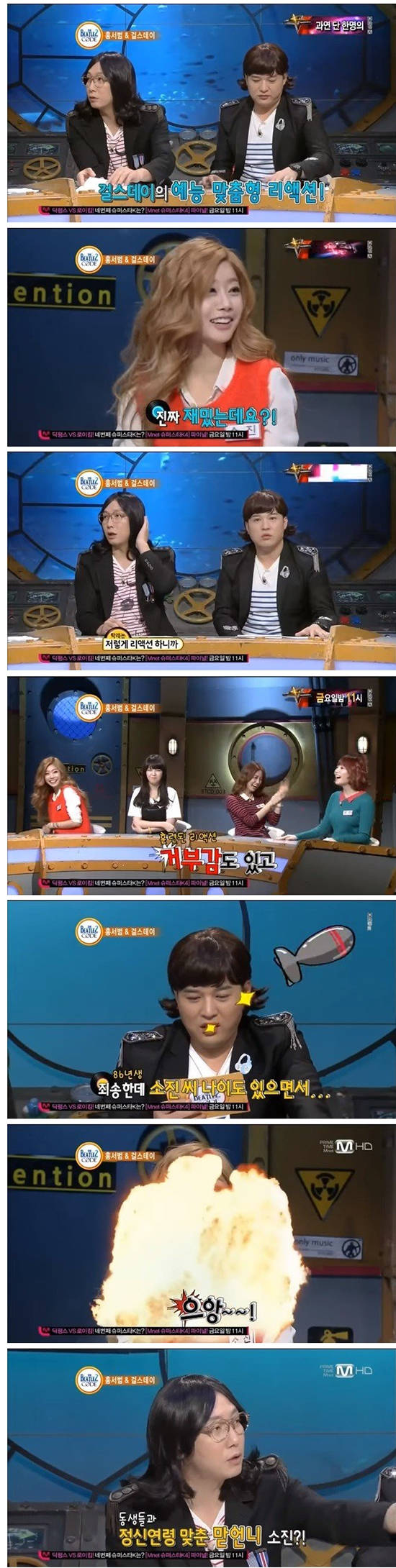 과거 Mnet'비틀즈 코드 2'에 출연한 걸스데이가 대화를 나누던 도중 멤버 유라의 엉뚱한 대답에 웃음을 자아냈다.