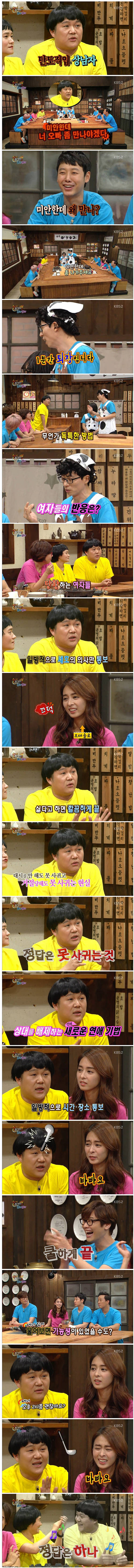 이후 여자들의 반응에 대해 물어보며 당시 게스트로 출연한 임은경과 상황극을 재연했다. 재연하는 도중 임은경의 단호한 거절에 조세호는 당황해했다.