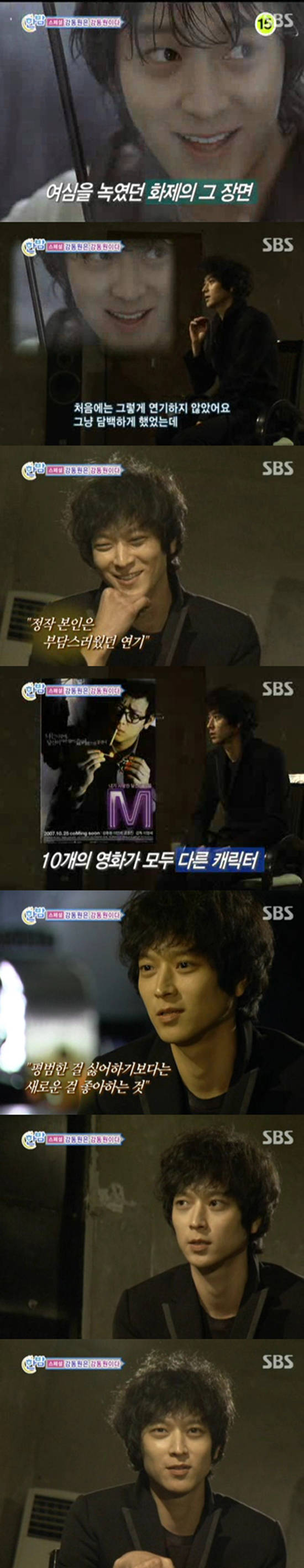 과거 '늑대의 유혹'으로 톱스타 반열에 오른 강동원은 여심을 뒤흔든 일명 '우산씬'의 비하인드를 공개했다. SBS '한밤에 TV 연예'에 출연한 강동원은 '늑대의 유혹'에 대해 "날 알린 기회가 된 작품"이라고 표현했다. 그러면서 우산씬에 대해서 "처음에는 그렇게 연기하지 않았었다. 담백하게 했었는데 감독님이 좀 더 밝게 웃어달라고 했다"고 말한 그는 이어 "극장에서 그 모습을 보는데 정작 나는 닭살 돋는다고 했던 장면이었다"라며 밝혔다.