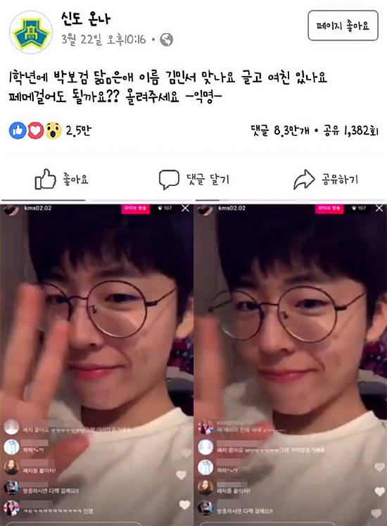 페이스북 페이지 '우리 학교 클라스'에서는 "1학년에 박보검 닮은 애 이름 김민서 맞나요? 여자친구 있나요? 페이스북 메시지 보내도 될까요. 익명입니다"라는 글이 올라왔다. 그리고 박보검을 닮은 모습을 한 사진이 여러 장 올라와 폭발적인 관심을 한 몸에 받았다.