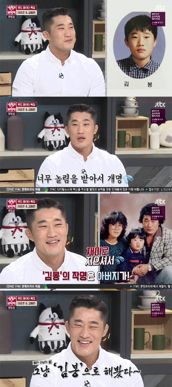 이종격투기 선수 김동현은 방송에서 학창시절 흑역사를 공개했다. JTBC '냉장고를 부탁해'에 출연한 김동현은 "지금 김동현이라는 이름은 개명한 이름이다. 어렸을 때 이름은 김봉이다"라며 "아버지가 지어주신 이름인데, 아버지가 재미로 지으셨다고 한다"고 밝혔다.