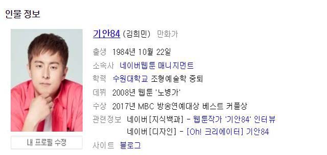 한편, 기안84는 2008년 웹툰 '노병가'로 데뷔했다. 이후 '패션왕'으로 이름을 알린 그는 현재 '복학왕'을 연재 중이다.
