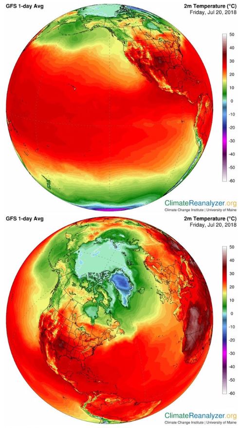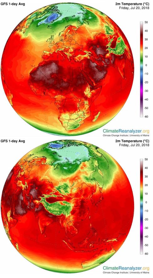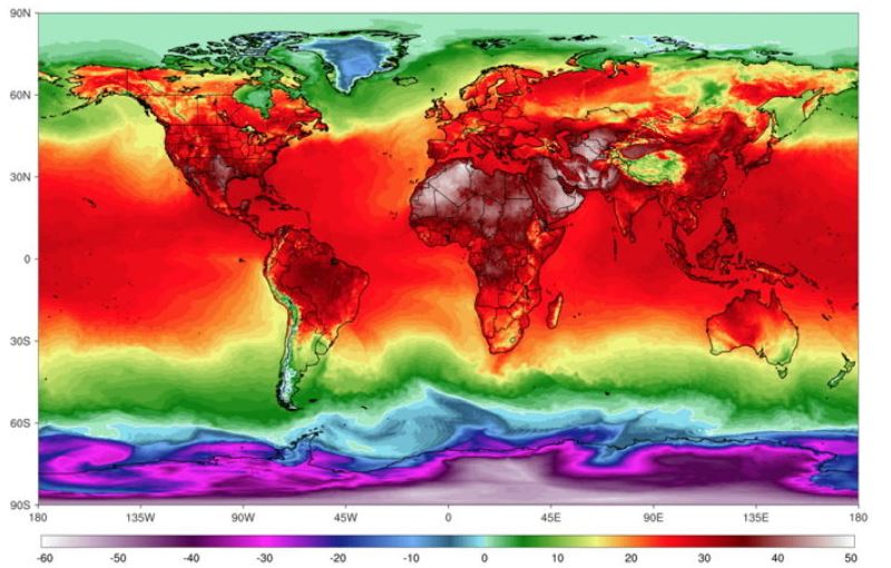 공개 된 자료에 따르면 지구의 남극과 북극을 제외한 대한민국 포함한 국가들이 최고온도에 해당하는 빨간색으로 뒤덮여 있다. 현재 아프리카의 경우 빨간색 보다 더진한 붉은 색으로 40도 이상 웃돌며 검붉은 색으로 나타난다.