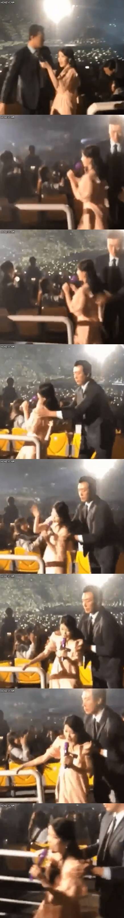 이유는 아이유가 예정된 방향이 아닌 다른 방향으로 걸어가자 '길치?'인 아이유를 태연하게 위치를 잡아 준 것이다. 이 경호원은 큰 키에 큰 덩치로 방향을 잘못 잡은 아이유를 힘으로 제압해 제대로 된 위치로 아이유를 데려다 놨다. 아이유는 아무렇지 않은 듯 태연한 척 노래를 부르며 경호원이 알려준 위치로 걸어가며 노래를 이어갔다.