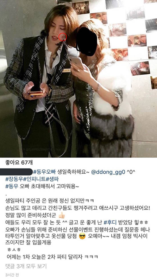 팬들 사이에선 장동우는 평소 '순둥이'라는 별명으로 팬들에게 착한 이미지와 밝은 성격으로 사랑을 받아 이번 사건이 더욱 팬들의 실망을 샀다. 특히 장동우의 볼에는 키스 마스가 선명하게 새겨있어 보는 사람들의 시선을 끌었다. 이와 관련해 이에 팬들은 "장동우한테 진짜 실망했다", "예전에는 홈마들이랑 개인 친목하더니 팬들은 안중에도 없나" 등 반응을 보였다.