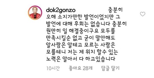 이 발언에 대해 네티즌들은 도끼에게 "무례했다", "그걸 해명이라고 하냐"등의 비난을 쏟아냈다. SNS에 그를 비난하는 댓글이 달리자 도끼는 "발언에 대해 후회는 없다. 제 위치에서 노력하고 있습니다"라고 남겼다.