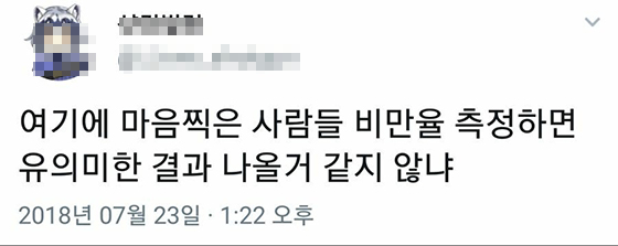 뿐만아니라 게시물에 달린 댓글은 더욱 팩폭을 날리고 있다. "여기에 마음찍은 사람들 비만율 측정하면 유의미한 결과 나올거 같지않냐"라고 남겼다.