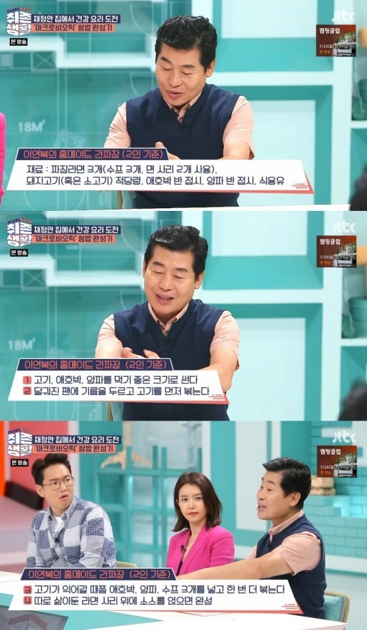 지난 2일 방송된 JTBC '취존생활'에 출연한 이연복은 인스턴트 짜장라면을 간짜장으로 먹을 수 있다며 레시피를 전수했다.