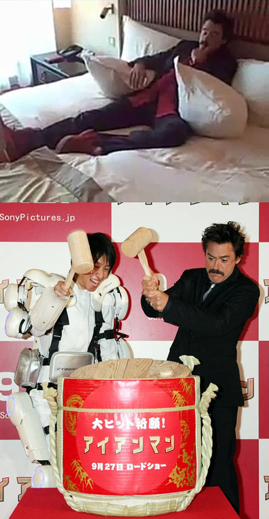 이후 아이언맨 홍보 행사에서는 "한 진행자가 스파이더맨 옷을 입고 나와서 '나는 마블 팬이지만, 아이언맨은 잘 모른다'라고 말해 당황스러웠다"라고 말했다. 이후 행사를 마치고 난 후 레스토랑에서 먹었던 쇠고기로 인해 식중독을 앓았으며, 엎친 데 겹친 격으로 사실상 술을 끊은 상태인데도 불구하고, 행사 진행과정에서 반강제로 술을 마셔야 하는 일이 생기게 되면서, 일본에 대한 나쁜 인상을 갖게 되었다고 한다. 이에 로버트 다우니 주니어는 "앞으로 두 번 다시 일본에 갈 수 없게 됐다"라고 덧붙여 일본 팬들의 아쉬움을 샀다.