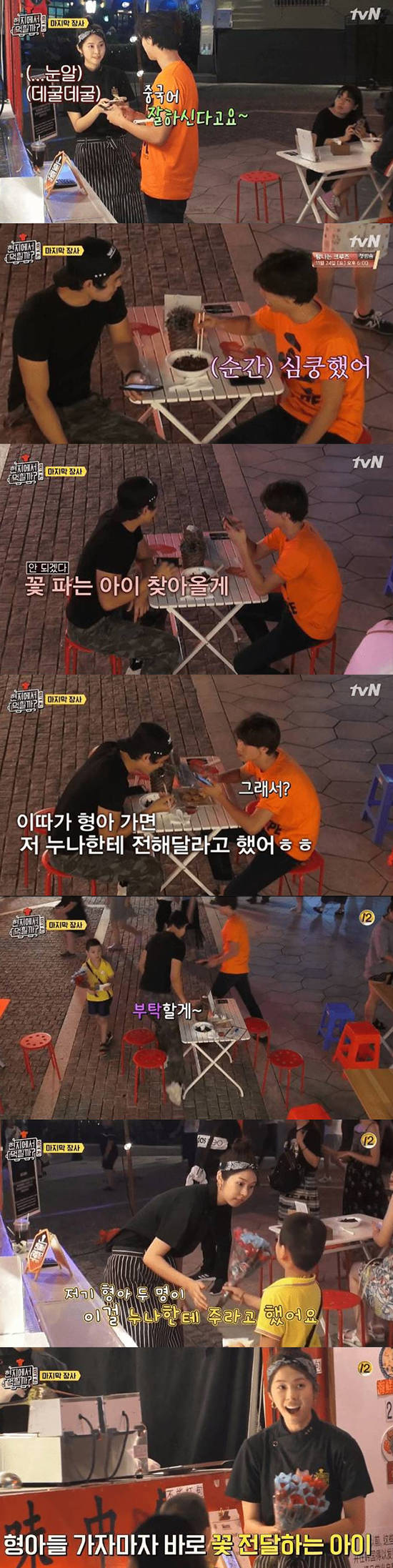 이어 중국 남성은 "한번 구경이나 하려고 왔는데 여자분(서은수)이 고개를 돌리니까 순간 심쿵했다. 떠나기 싫어졌다"며 설렌 심경을 드러냈다. 이를 지켜보던 친구는 꽃을 파는 아이를 통해 서은수에게 마음을 전하자고 제안했다. 두 사람은 꽃 파는 아이에게 "여자분(서은수)한테 엄청 예쁘다고 말해달라"고 부탁한 뒤 자리를 떴다.