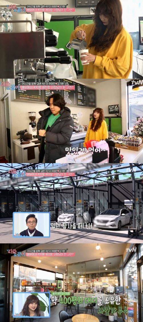 예능프로그램 '따로 또 같이'에서는 허영란-김기환 부부의 일상 모습이 전파를 탔다. 이날 방송에서 허영란은 대전에서 400평대 세차장과 카페를 운영 중이라고 밝혔다. 그는 "24시간 남편과 붙어서 생활한다"며 "저는 바리스타 자격증을 취득해서 카페를 운영하고, 남편은 세차장에서 일한다. 우리 두 사람이 아르바이트생 없이 가게 오픈부터 마감까지 모든 업무를 맡는다"고 전했다.