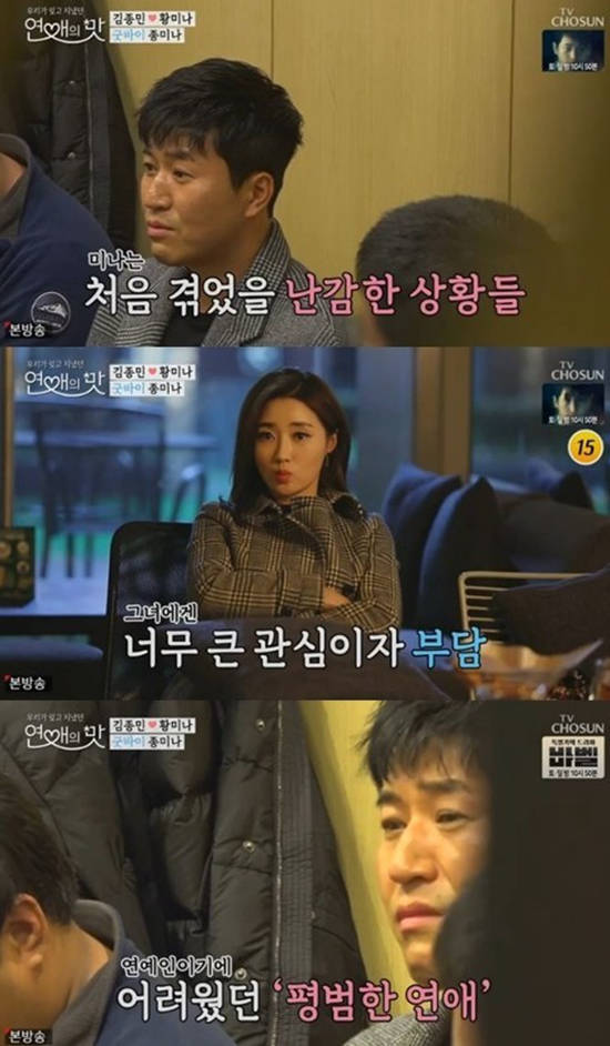 또 김종민은 방송 출연 이후 갑작스러운 관심이 부담됐을 황미나를 걱정하며 "나는 그런 일이 익숙한데, 미나는 처음이니까 감당을 못했을 것 같다. 얼마나 부담이 됐겠나"라고 말했다. 끝으로 김종민은 "우리의 만남이 트라우마로 남지 않았으면 좋겠다"며 황미나의 행복을 빌었다.