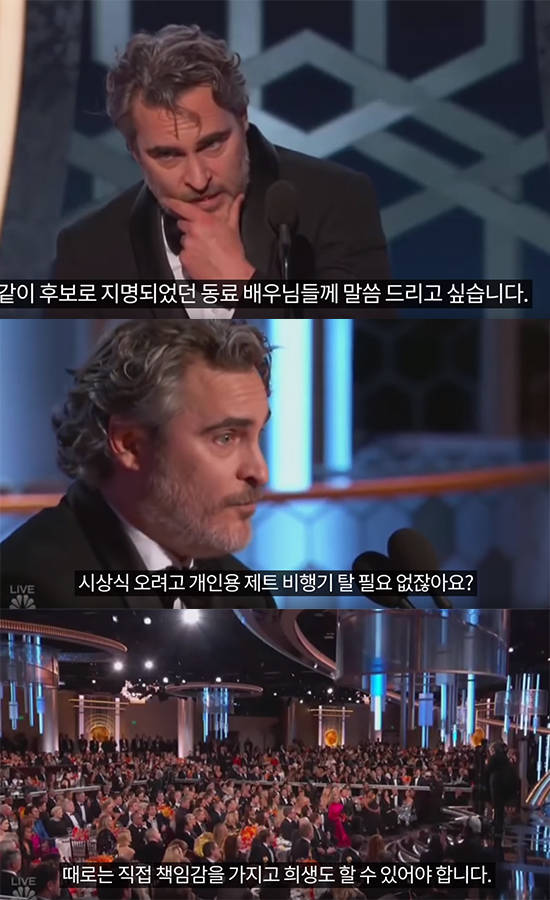 배우 호아킨 피닉스가 미국의 최고 영화상 중 하나인 골든글로브 수상 소감에서 충격적인 발언을 해 화제다.