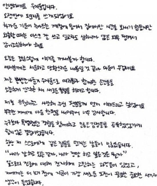 또한 우지윤은 자필 편지로 자신의 탈퇴 이유를 밝히며 "앞으로의 진로에 대해 진지하게 고민하는 과정들이 있었습니다"라며 "더 늦기 전에 지금이 가장 새로운 도전이 필요한 중요한 시기라는 생각이 들었습니다"라고 의미심장한 말을 남겼다. 그가 결심한 진로에 대해서는 아직 정확하게 드러난 바 없다.
