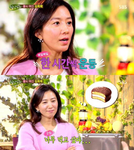 김희애는 과거 방송된 SBS 예능프로그램 '힐링캠프, 기쁘지 아니한가'에 출연해 10년째 몸무게 49kg를 유지하는 비법이라며 운동법을 소개했다. 이날 MC 성유리는 "김희애 씨가 매일 8시간씩 운동을 해서 20대 몸매를 유지한다는 소문이 있다"고 말했다.