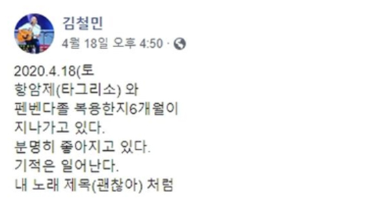 개그맨 김철민 역시 폐암 말기 환자로 긴 투병생활을 했다. 그는 폐암이 악화되자 마지막 방법으로 펜벤다졸을 복용했고, 다행히 한 매체를 통해 "암수치가 반으로 줄었다"고 긍정적인 근황을 알렸다. 그는 "치료가 잘 돼서 말기 암 환자들한테 마지막 희망을 보여주고 싶다"며 "펜벤다졸 복용과 병원 방사선치료, 그리고 수많은 팬의 응원과 기도가 한데 보태져 반드시 좋은 결과가 나올 것으로 믿는다"고 인터뷰를 마쳤다.