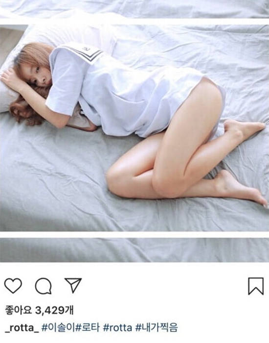 사진 속 이솔이는 짧은 하의를 입거나 비키니 차림으로 몸매를 부각시켰다. 로타는 해당 사진을 업로드 하며 이름을 밝힌 것은 물론 "내가 찍음"이라고 직접 해시태그는 달기도 했다. 당시 이솔이는 로타의 전시회를 직접 찾아 자신의 사진 앞에서 기념샷을 남긴 것으로 전해졌다.