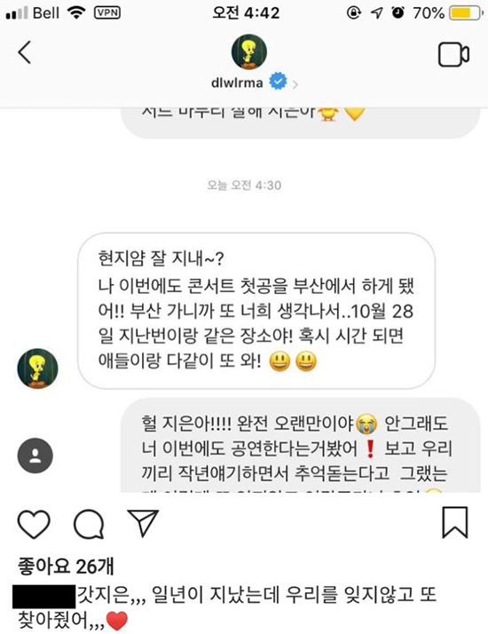이뿐 아니라 이이유는 매년 민박집 친구들을 콘서트에 초대한 사실이 알려지면서 화제가 됐다. '김해 시스터즈' 친구 중 한 명이 아이유가 보낸 인스타그램 메시지를 SNS에 공개하기도 했다.