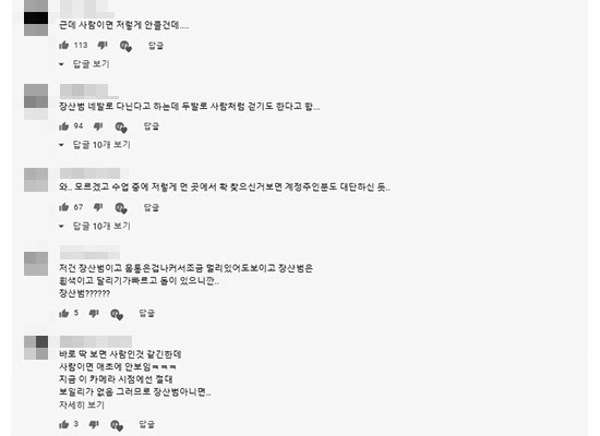 한 유튜브 채널에는 최근 '학원에서 찍은 장산에 흰색 괴물'이라는 제목으로 영상 하나가 게재돼 무려 60만 회에 달하는 조회수를 기록했다. 사람들의 이목을 끌은 장산범 영상은 학원에서 수업을 받던 어느 초등학생이 촬영한 것이다.