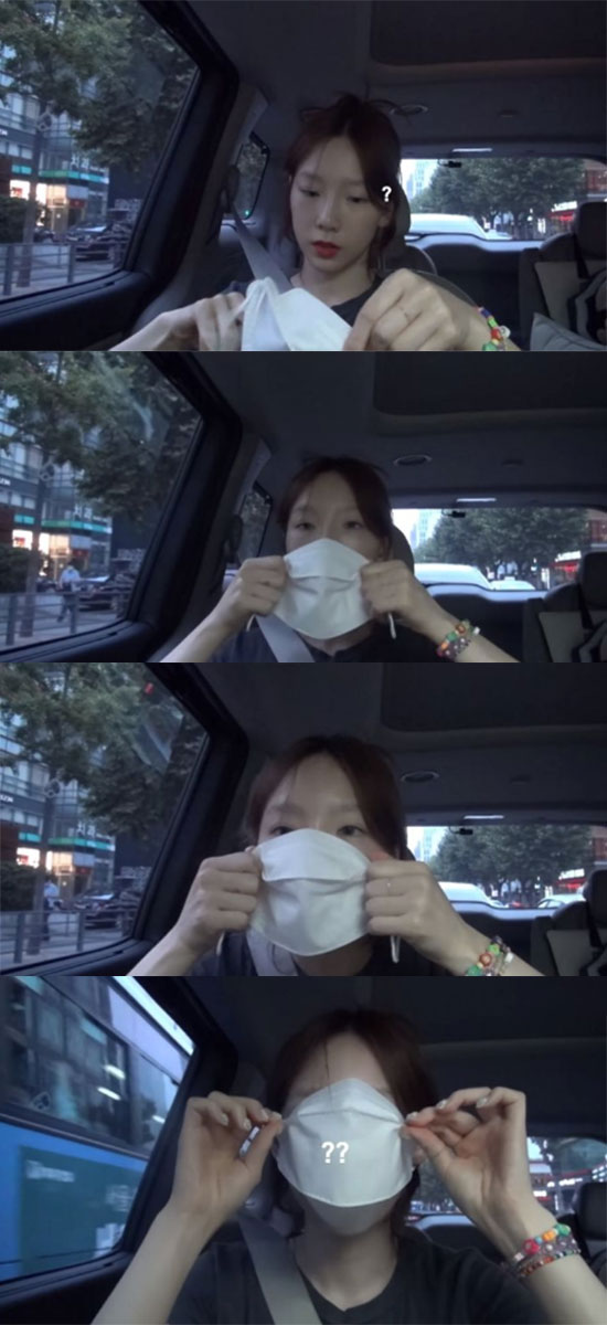 이날 태연은 차에서 내리기 직전 코로나19 바이러스 전염을 방지하기 위해 마스크를 착용했다. 태연이 착용한 마스크는 일반적인 입체형 마스크였지만, 일반적이지 않은 태연의 얼굴로 이질적인 장면이 연출됐다. 태연은 자신의 얼굴에 비해 다소 큰 마스크를 낀 채 "너무 크다"라며 마스크의 일부를 접는 등 다양한 시도를 했다.