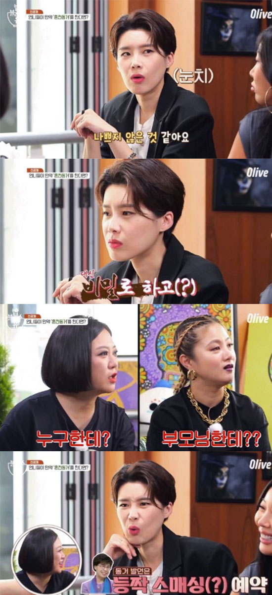 장도연은 최근 방송된 Olive '편 먹고 갈래요? <밥블레스유 2>'에서 게스트 제시와 함께 유쾌한 입담을 뽐냈다. 이날 제시는 혼전 동거와 관련한 사연을 듣고 "미국에서는 특별한 일이 아니다"라고 밝혔다.