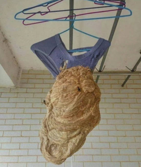 매체에 따르면 학생은 코로나 사태 전 빨래 후 속옷을 옷걸이에 널어뒀다가 커다란 말벌집이 생긴 것을 보고 경악을 금치 못했다고 한다. 사진에 등장하는 파란색 속옷은 이미 거대한 말벌집으로 뒤덮인 모습이다. 코로나19로 방학이 길어질 줄 몰랐던 그는 팬티에 자리 잡은 말벌집에 크게 충격받았다는 후문이다. 해당 사연을 접한 네티즌들은 "꿀 따먹으면 배부르게 먹을 수 있을 듯", "저거 비싸지 않나", "조심해야할 텐데"라는 등의 다양한 반응을 보였다.