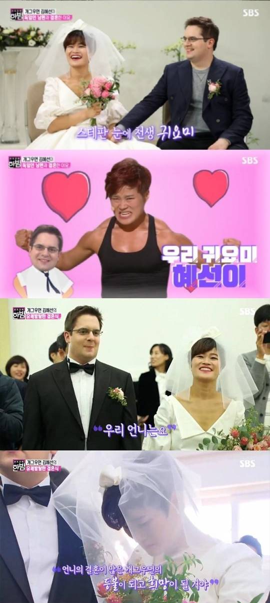 이에 김혜선의 결혼 스토리가 재조명되고 있다. 과거 SBS '본격연예 한밤'에 출연한 김혜선은 이날 "독일에서 친구의 소개로 남편 스테판 지겔을 알게됐다"면서 "남편이 내가 개그우먼인 것을 몰랐을 때는 말하기 싫었다. 말하면 이미지가 바뀔 수도 있으니까"라고 말했다.