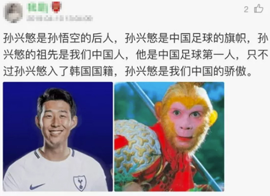 축구선수 손흥민이 중국인이라는 황당한 주장이 제기돼 화제다.