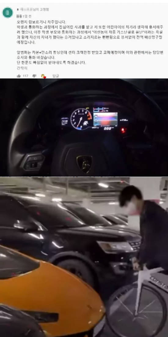 최근 화제가 된 '자전거 테러' 영상 속 오렌지 람보르기니 차주라고 주장하는 한 네티즌이 유튜브 채널 '에스프로'에 가해 학생과 직접 통화해 진심 어린 사과를 받았다고 입장을 밝혔다.