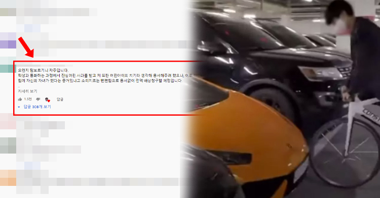 차주는 자전거로 자신의 차를 훼손한 학생에 대해 "'어린아이의 치기'라 생각해 학생의 행동을 용서해 주려고 마음먹었다"라고 말했다. 그러나 학생의 부모와 통화하면서 그의 생각에는 큰 변화가 일어났다. 차주는 학생의 부모가 "어린놈이 차 좀 기스난 걸로 유난"이라며 "우리 아이가 했다는 증거가 있느냐"라고 욕설을 들었다고 주장했다.
