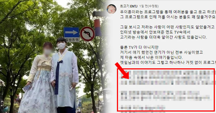 그러던 중 최고기는 지난 2일 자신의 유튜브 채널 커뮤니티를 통해 "'우이혼'이라는 프로그램을 통해 여러분들 울고 웃고 하셨을 것"이라며 "그래서 여자친구 얘기에 대해 더더욱 실망하신 분들도 계실 것인데 욕하시고 뒤통수 후려치게 당했다는 분들도 있겠지만 그런 면은 충분히 받아드리고 잘 얘기 해드릴 수 있다"라며 심경을 고백했다.