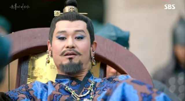 '육룡이 나르샤' 길태미는 고려 제일검으로 유명한 무사임에도 불구하고, 화려한 의상과 화장으로 전통적인 무인과 전혀 다른 분위기를 내는 독특한 캐릭터다.