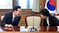 웃으며 대화 나누는 구윤철 부총리와 조현 외교부 장관 [포토]