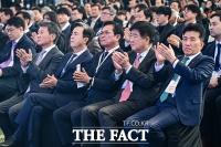 코리아풋볼파크 개관 축하하는 정몽규·김태흠·김석필·권오갑·함영주 [포토]